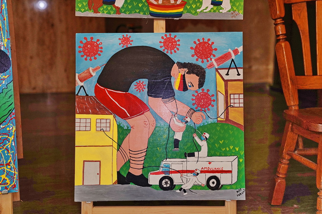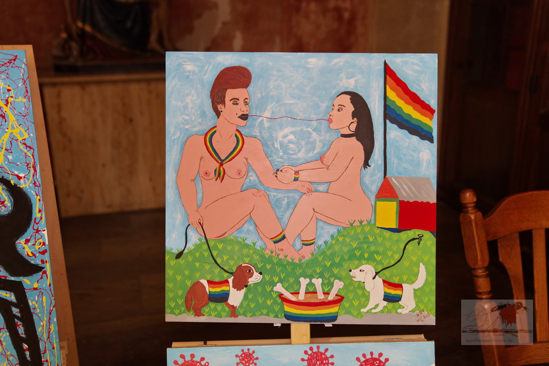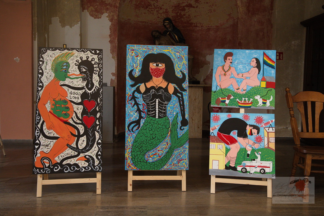 Die Ausstellung in dem Kirchenraum übertraf bei weitem unsere Erwartungen. So zahlreiche, interessante und vielfältigen künstlerischen Arbeiten hatten wir nicht erwartet.