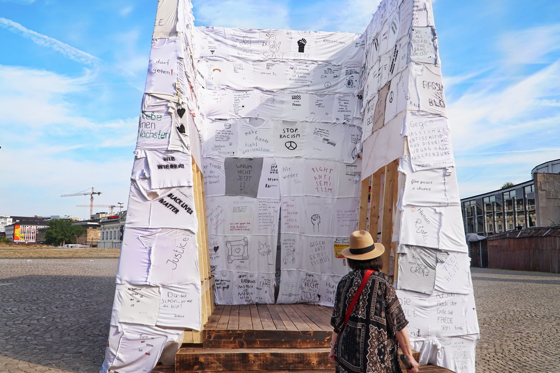 Der Künstler Architekt Christoph Hesse: wir wollen unsere Stimme erheben und die Gelegenheit zu Reaktionen aus der Bevölkerung geben. Deshalb trägt das Kunstwerk den Titel: Voices (Stimmen). Der 45-jährige Architekt mit einem Büro in Korbach ist mit einigen Kolleginnen und Kollegen schon von Anfang an auf der documenta15 vertreten.