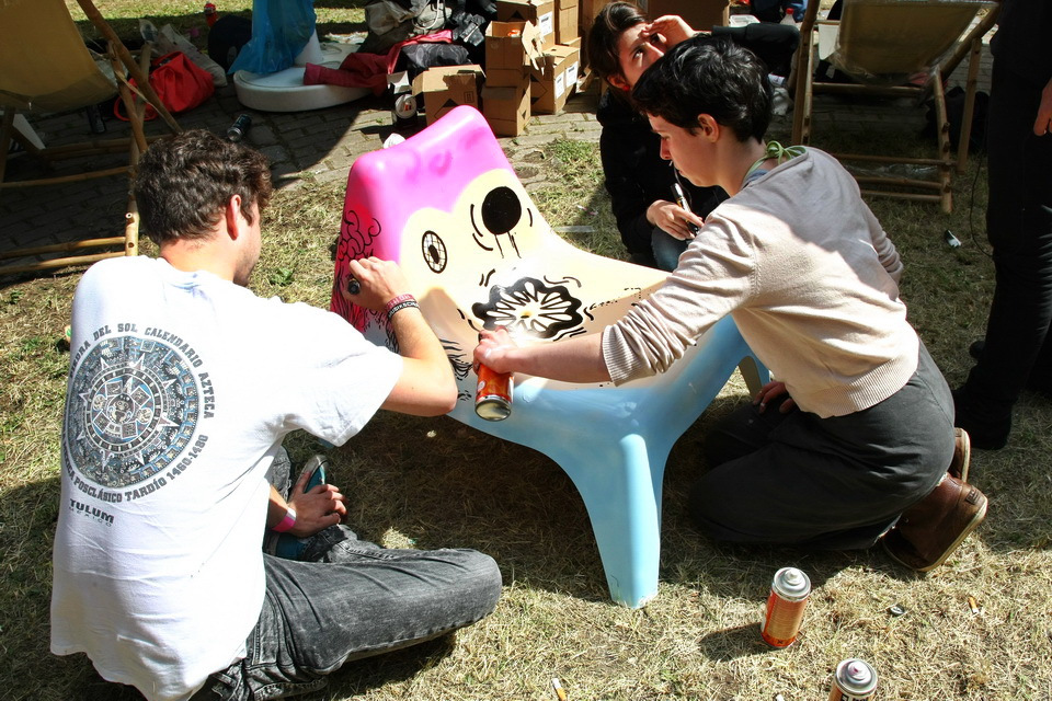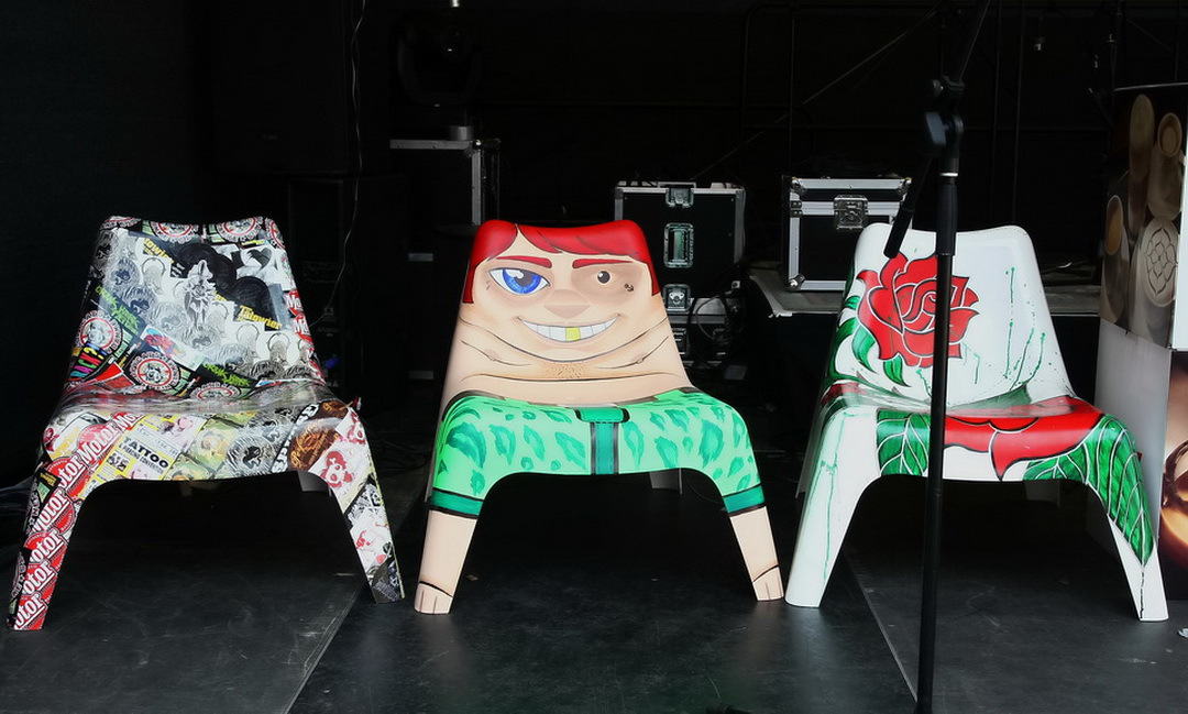 Das Einrichtungshaus IKEA hat 13 Stühle gesponsert, die im Zuge der Veranstaltung von den Künstlern bemalt und am Samstag um 18:00 Uhr für einen guten Zweck versteigert werden. (NHB.)KAJO)