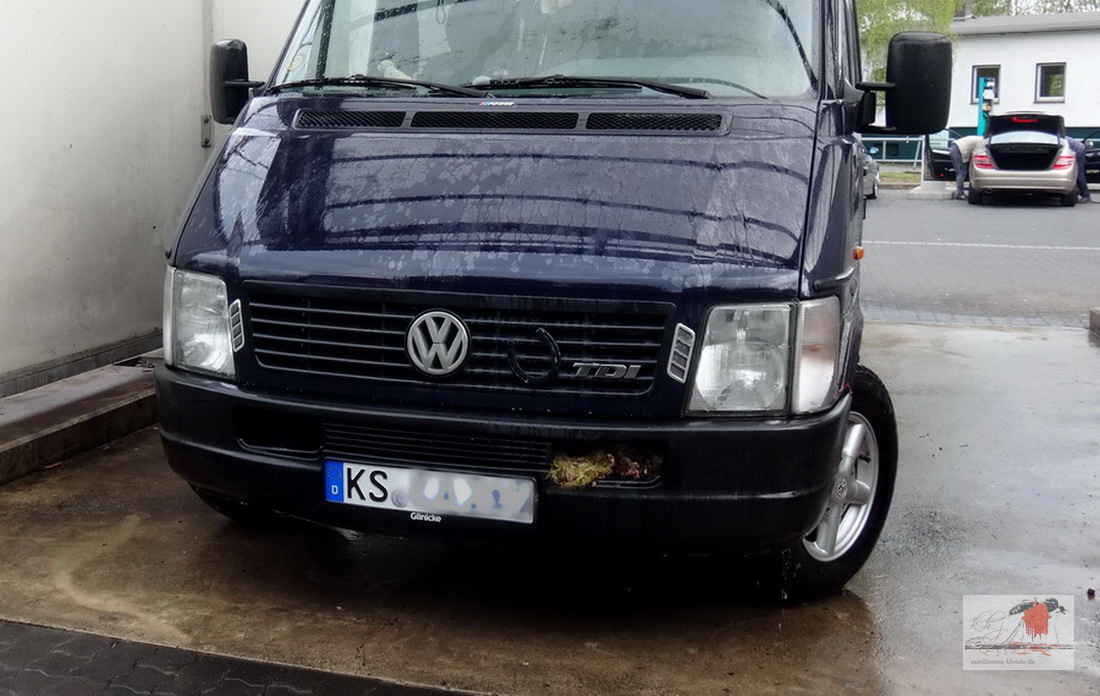 An der Waschanlage angekommen begann ich die Wäsche mit der Frontscheibe und spritzte gerade mit einem breiten Strahl die Scheibe und die Motorhaube ab.