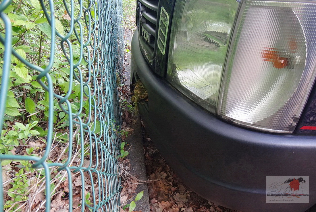 An der rechten Trittstufe der Stoßstange bemerkte ich plötzlich ein Bündel Gras mit Blättern vermischt rausgucken ,was ist das denn ? bei näherem hinsehen entdeckte ich ein Vogelnest,