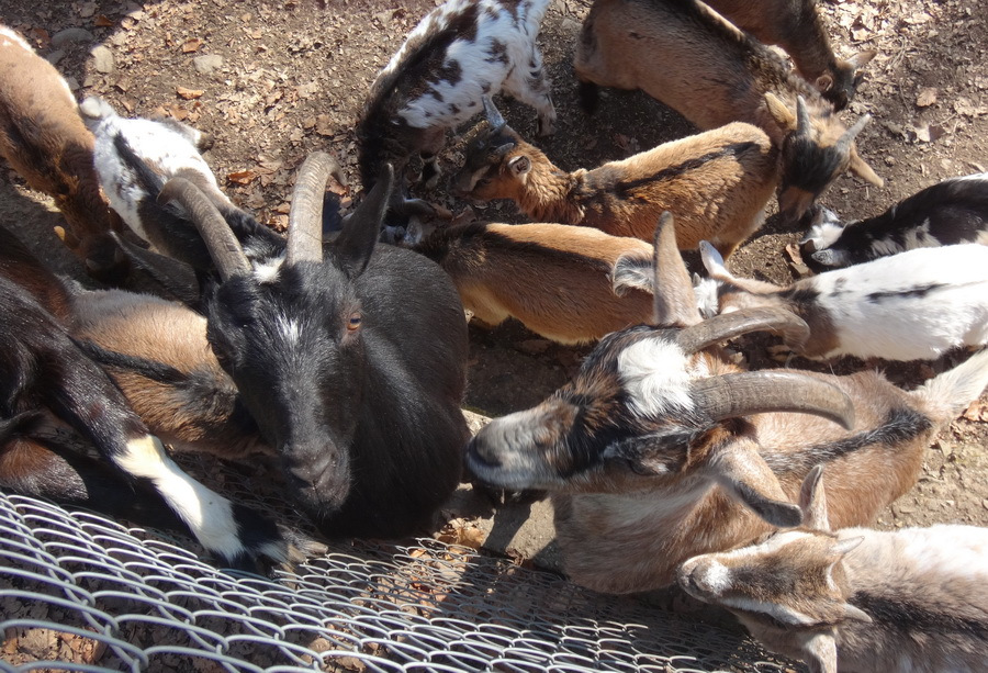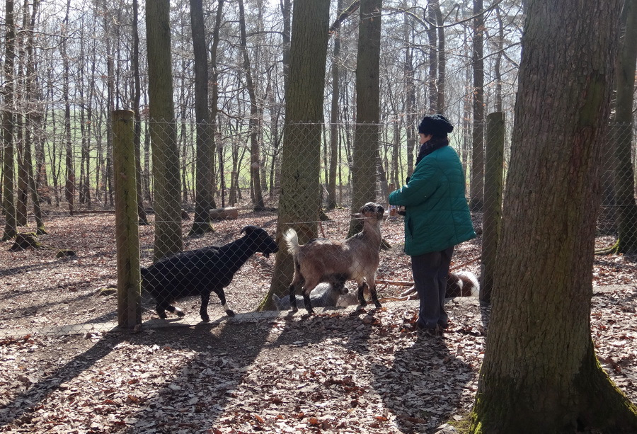 Die Aufregung am Zaun und die Grunzgeräusche der Wildschwein Rotte lockte sogar die kleinsten der Frischlinge aus dem warmen Strohhaufen ihres Unterstandes zu den „Großen“ am Gehege Rand. Den Wildschweinen folgt die Anlage der Damhirsche ,diese Anlage ist Besuchern über eine Schleuse zugänglich und erlaubt direkten Kontakt mit den Bewohnern.