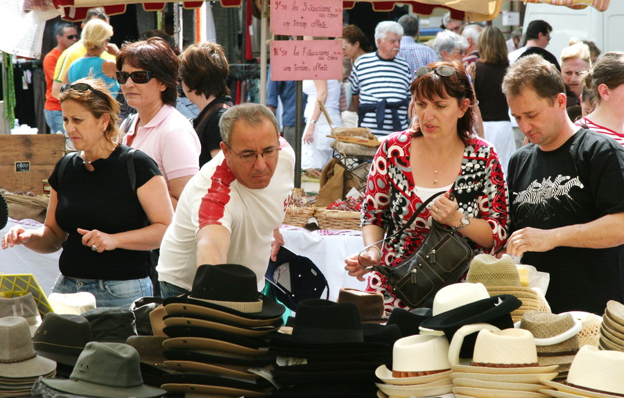 Der bunte Markt mit seinen unzähligen Verkaufsständen zieht sich durch die gesamte Altstadt. Bei einem großen Cafe Creme in einem der vielen Cafes läßt sich dieses Markttreiben am besten beobachten.