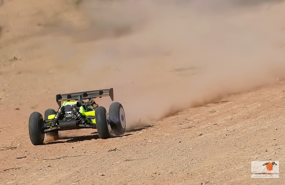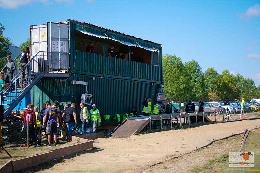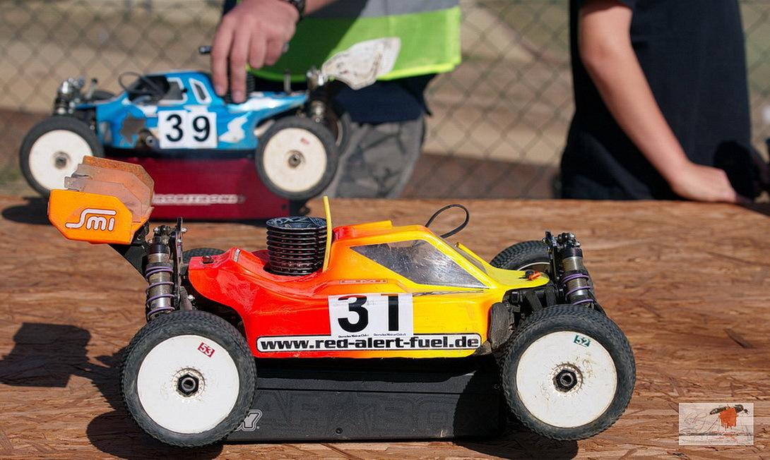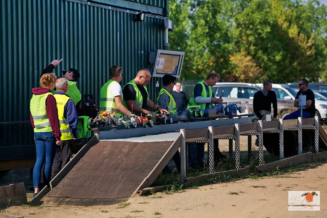 Am Samstag finden die Vorläufe und am Sonntag die Finals statt, gestartet wird in den Klassen für Benzin und Elektromotoren Zur Rennstrecke gehören eine Lehmpiste, Bodenwellen und eine gepflasterte Steilkurve. 70 Sachen sind locker drin bei den „Kleinen Flitzern“die im Maßstab 1 :8 gefertigten Minirennwagen.NHB.KAJO.