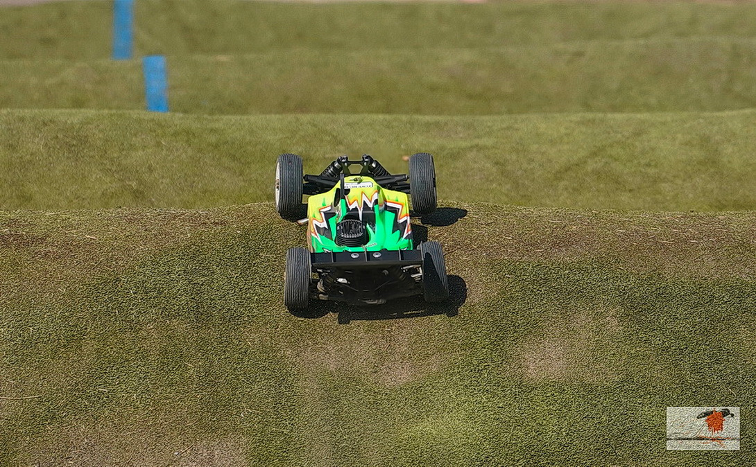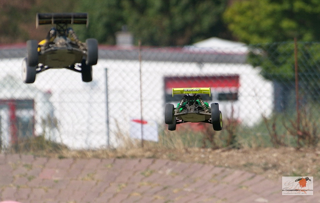 Am Samstag finden die Vorläufe und am Sonntag die Finals statt, gestartet wird in den Klassen für Benzin und Elektromotoren Zur Rennstrecke gehören eine Lehmpiste, Bodenwellen und eine gepflasterte Steilkurve. 70 Sachen sind locker drin bei den „Kleinen Flitzern“die im Maßstab 1 :8 gefertigten Minirennwagen.NHB.KAJO.