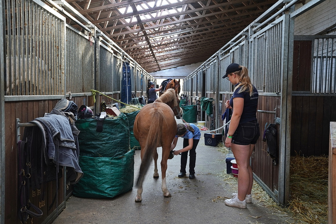 Bei einem Blick in die Stallungen durften wir einer jungen Nachwuchsreiterin bei der Hufpflege zusehen und Streicheleinheiten bei dem einen oder anderen Pferd verteilen.