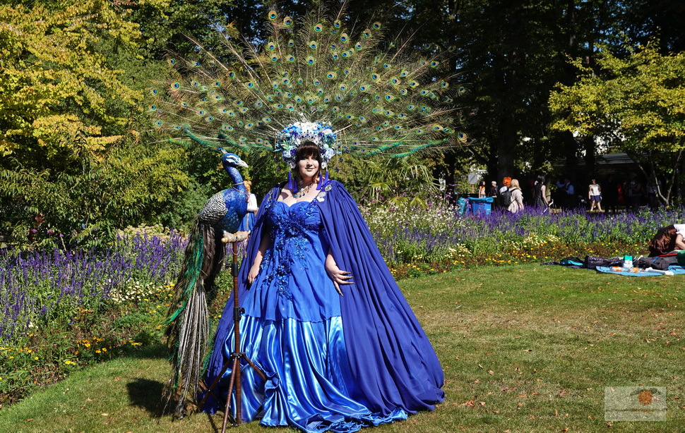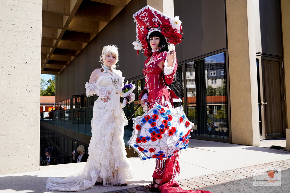 Drei Tage lang tummeln sich dann hier die buntesten und abenteuerlichsten Gestalten . Zierlichen Elfen mit zarten, durchscheinenden Flügelchen , bunte Blumenmädchen ,Kimonodamen, furchterregend anzuschauende Krieger und andere in zahllosen Kostümvarianten steckende Cosplayer treffen sich an diesen drei Tagen zum großen Défilé im Stadthallengarten und vor dem Kongress Palais.
