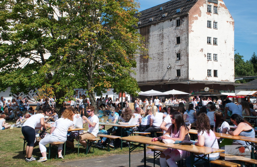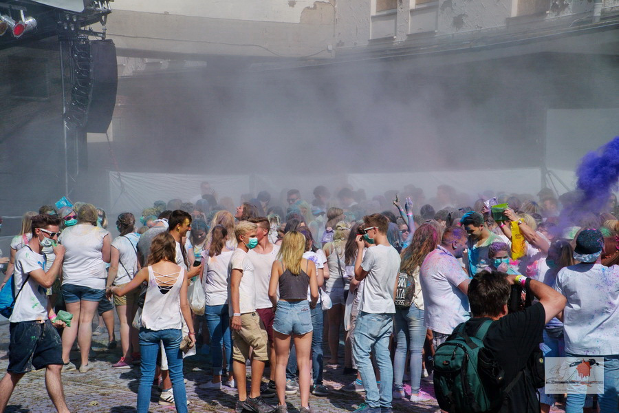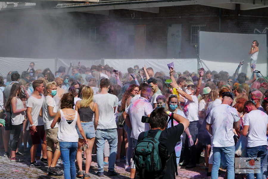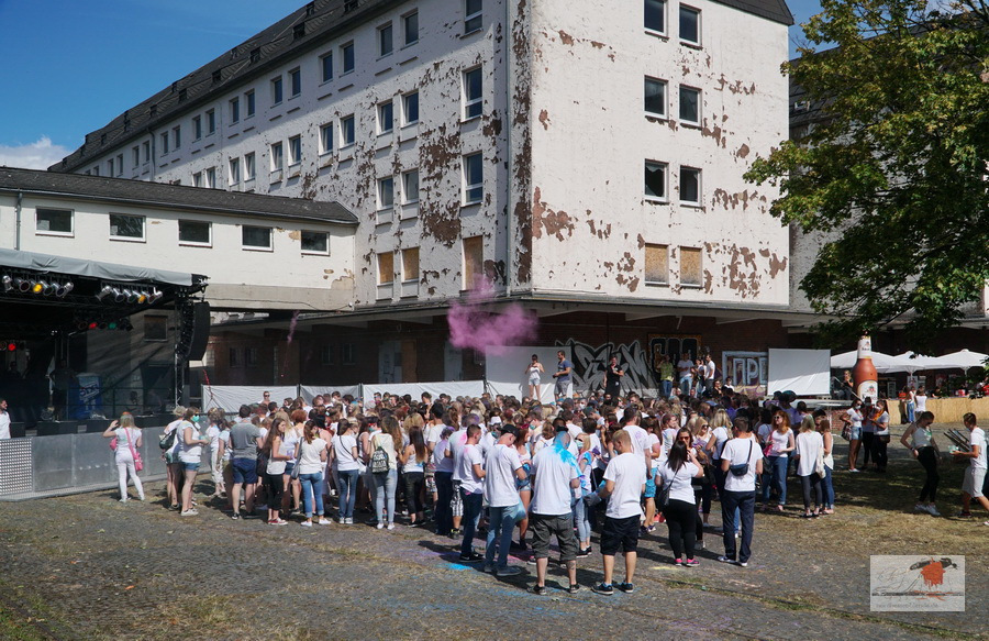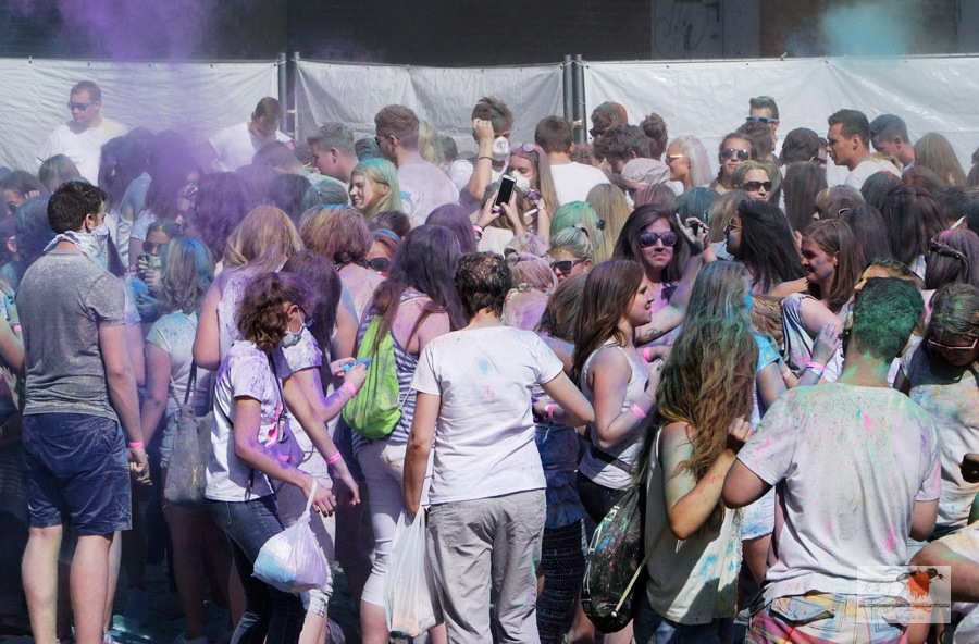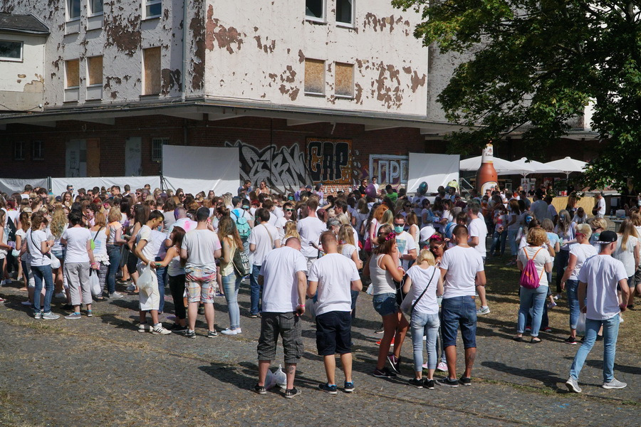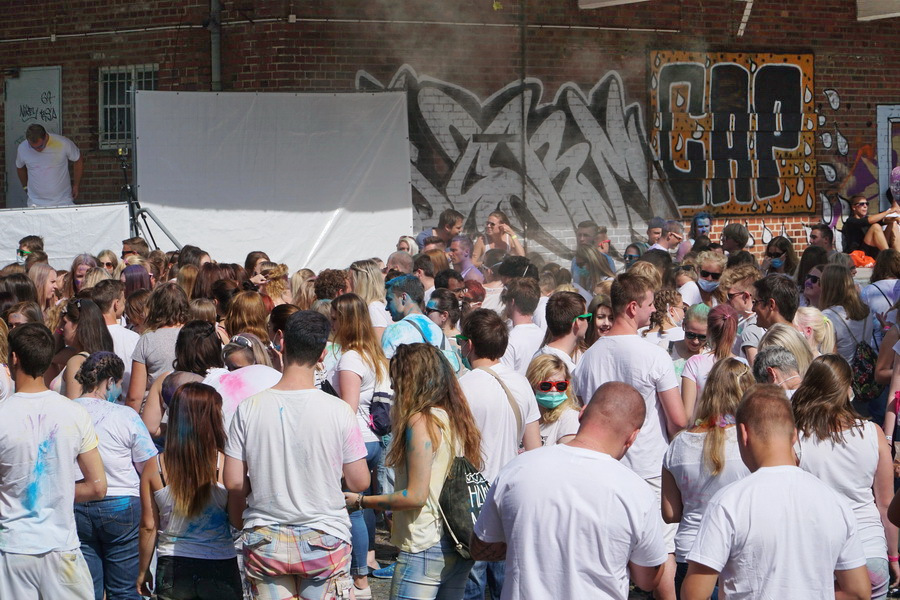 Zu dem in der indischen Tradition verankerten Fest waren etwa 2500 Besucher gekommen, um sich von mittags bis abends im Stundentakt mit bunten Farben zu bewerfen.